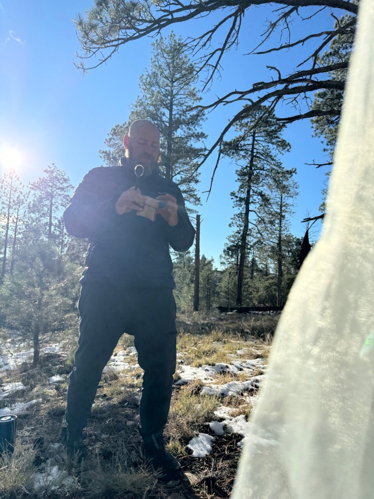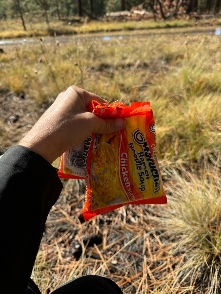 We stopped for lunch about 6.5 miles in to the hike. We found a nice sunny spot that was warm and perfect. Ramen Noodles for the win. We even learned you can cook them in their own bag. Bonus!