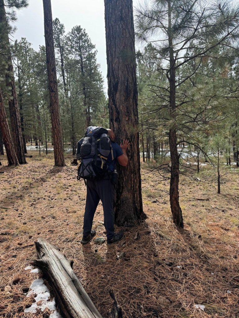 It rained all night and in to the morning. We woke up to some ice! It was cold switching out clothes. Once we started walking it helped. My shoes were soaked. I made a rookie mistake and didn’t put them on top of my bag! Live and learn or in my case, live and remember!